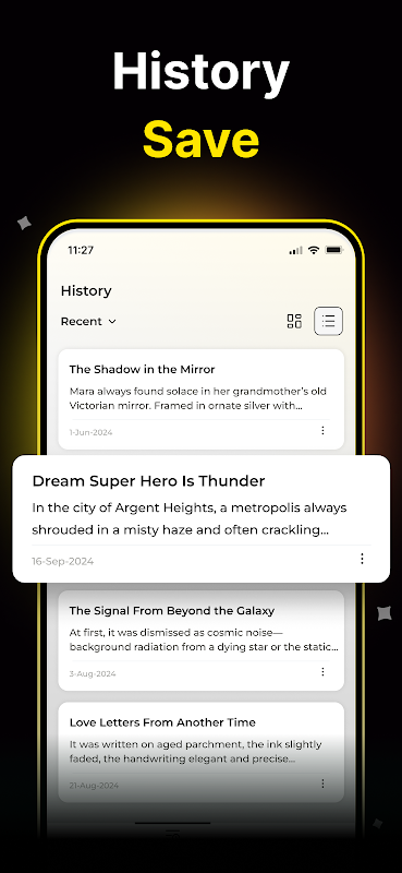 Ottieni storie eccellenti! È efficiente scrivere storie di alta qualità su qualsiasi argomento. Tutte le narrazioni generate dall'app sono leggibili, memorabili e coinvolgenti.