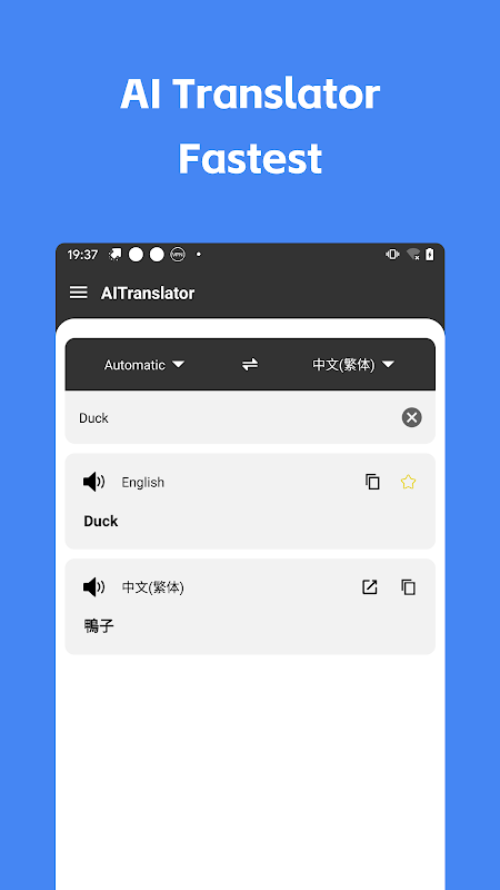 【AI Translator】 è un'applicazione di traduzione semplice e pratica. Il nuovo motore di traduzione AI leader rende tutto più affidabile e garantito. Il design dell'interfaccia è semplice ed elegante, di piccole dimensioni, ma potente nelle funzioni. Sbrigati, scaricalo e provalo~