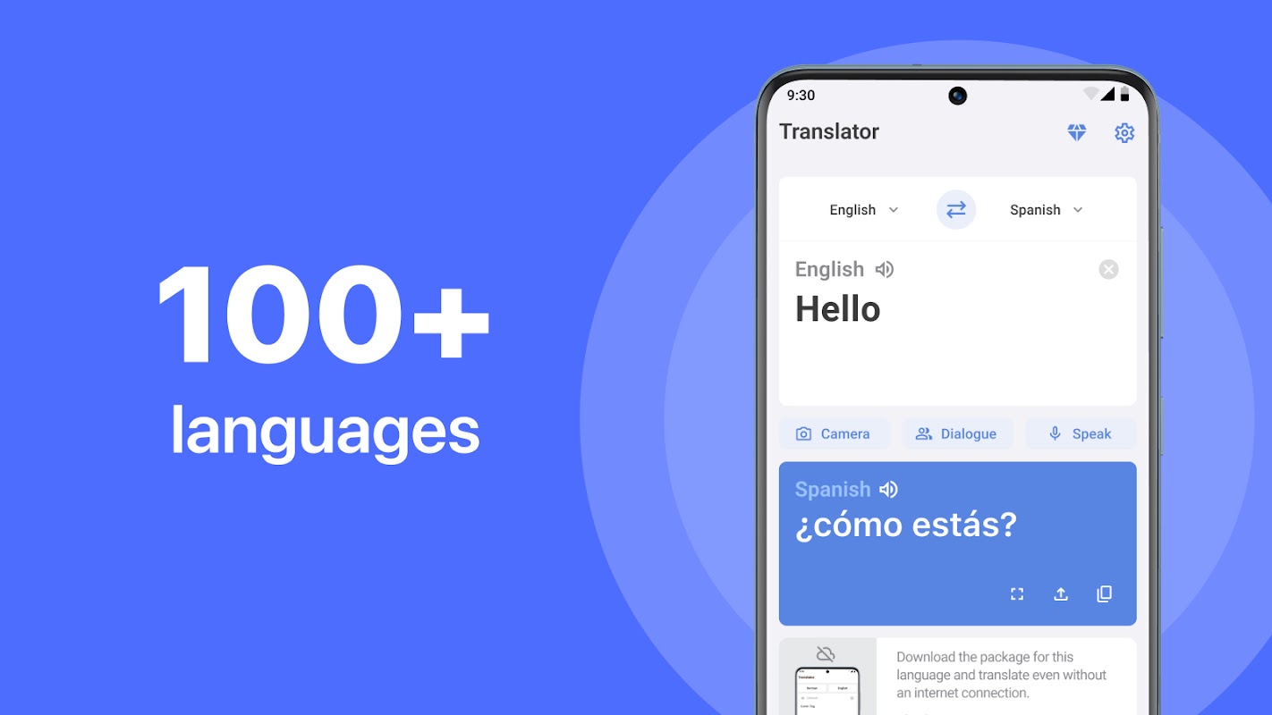 Modalità offline: rimani connesso senza connessione internet. Scarica pacchetti linguistici e traduci mentre sei in movimento.