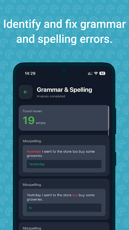 • Correzione grammaticale e ortografica con correzioni in un clic