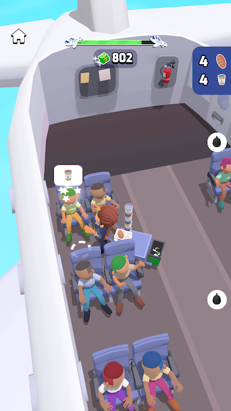 La tua ricerca è "semplice"... Corri veloce per prendere ordini dai passeggeri, cucinare hamburger, impilarli e correre intorno ai sedili dei passeggeri per servirli. Assumi nuovi camerieri, raccogli i soldi e costruisci un impero aereo!
