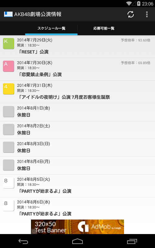AKB48劇場公演のスケジュールを表示するアプリです。チームと応募枠を設定しておくと、申込受付開始を通知でお知らせします。