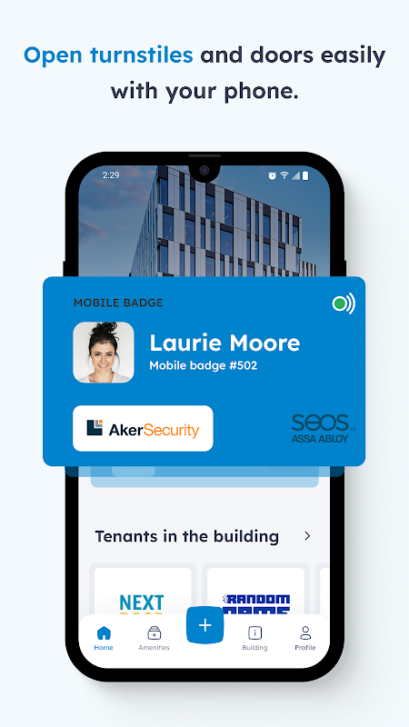 Questa applicazione è destinata non solo ai dipendenti che lavorano in AKER, ma anche ai loro visitatori. Le informazioni importanti sull'edificio sono organizzate sulla dashboard, che cambia dinamicamente nel corso della giornata. L'app offre più funzionalità tra cui forum, possibilità di richiedere manutenzioni, eventi, informazioni sulle aziende presenti nell'edificio e sull'edificio stesso dove è possibile trovare contatti importanti, guide e documenti.