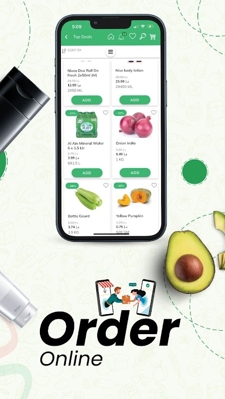Ottieni tutto, a portata di mano! Fai acquisti comodamente da casa e ricevi la spesa e altri oggetti essenziali quotidiani direttamente a casa tua all'ora che preferisci! Acquista da oltre 50.000 prodotti per verdure fresche, frutta, carne, generi alimentari di alta qualità, prodotti per la casa, cosmetici, cura della persona, alimenti per animali domestici, giocattoli e altro ai migliori prezzi ad Abu Dhabi.