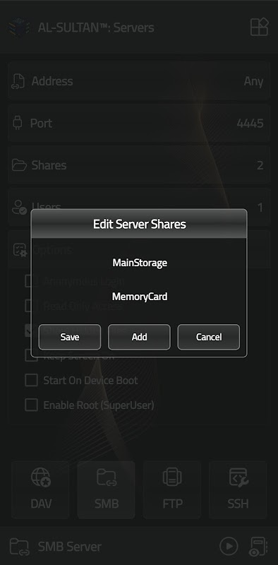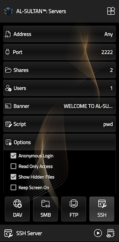 Servers è un'applicazione veloce e sicura che offre i server più comunemente utilizzati: server FTP, server SMB v3, server WebDav e server SSH.