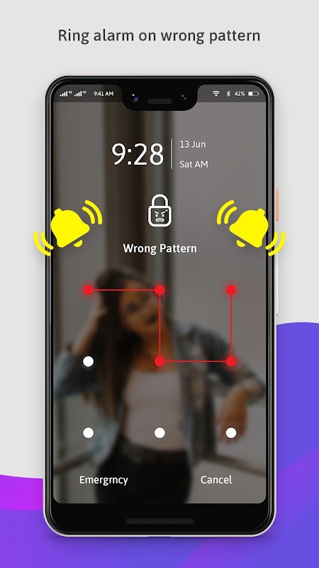 Tieni l'app Allarme su pattern errato sul telefono per trovare chi sta tentando di sbloccare il telefono.