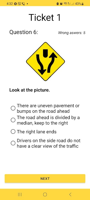 Per avviare il test premere il pulsante Avvia nell'elenco dei ticket. Per rivedere le tue risposte o trovare risposte corrette premi il pulsante Visualizza. Le risposte corrette verranno evidenziate con il colore verde, le risposte errate saranno evidenziate in rosso. L'applicazione calcola i tuoi progressi in base alle risposte corrette, quindi puoi visualizzarli nella parte superiore dello schermo. Quindi i tuoi progressi raggiungeranno il 100%: assicurati di essere pronto per il vero test. Puoi prendere qualsiasi biglietto molte volte fino a quando non avrai risposto correttamente a tutte le domande.