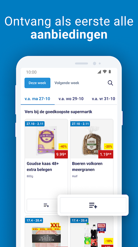 Non vuoi più perdere nessuna offerta? Scarica l'app ALDI e sarai il primo a ricevere le ultime offerte, aggiungi i tuoi preferiti alla lista della spesa e scopri subito quanto puoi risparmiare.