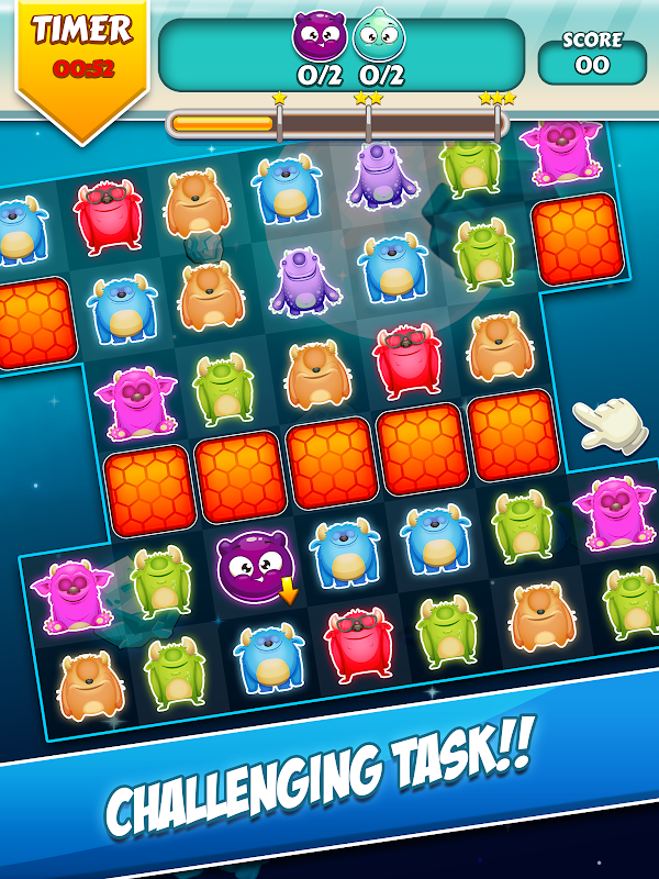 Match Aliens greedy and have fun obsidian! Eliminate all obstacles and let the Aliens fall.