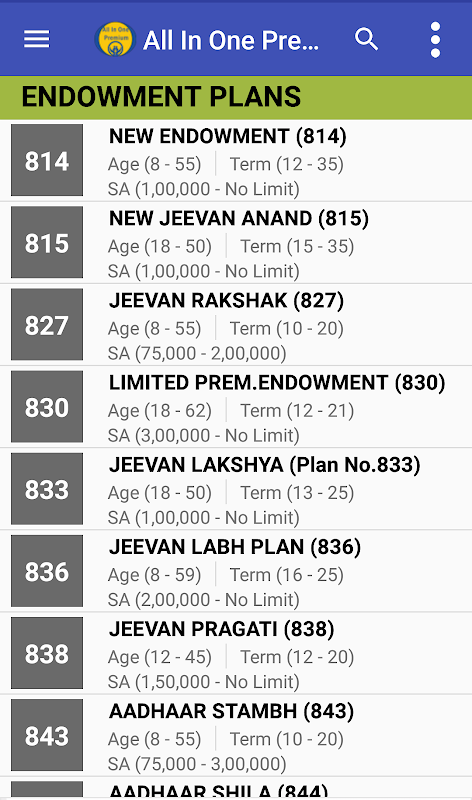 D. Plan - Multiple Age/Term Wise Premium Booklet