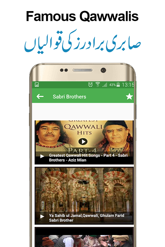 Sabri Brothers mp3 Qawwali – Another famous Qawwali name is Sabri brothers. These brothers brought a new life to old and classical qawwali. In this best qawwali collection app you can find audio mp3qawwalis of sabri brothers as well as live performances of sabri brothers in different concerts andshows.
