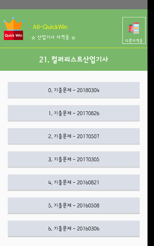 Quick하게 컬러리스트산업기사 자격증 공부를 Mobile로 이동하면서 공부 할 수 있는 어플입니다.