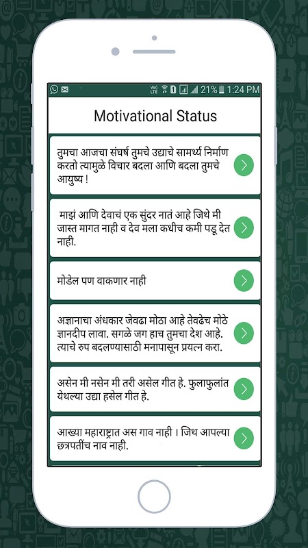 All Status app contain status in Hindi Status, English Status, Gujarati Status, Marathi Status, Punjabi Status, Tamil Status, Shayari and Sms in multi languages.now you can easily make your profile appealing and sharing is quick and fast through copy and share button and also use as to create video status.