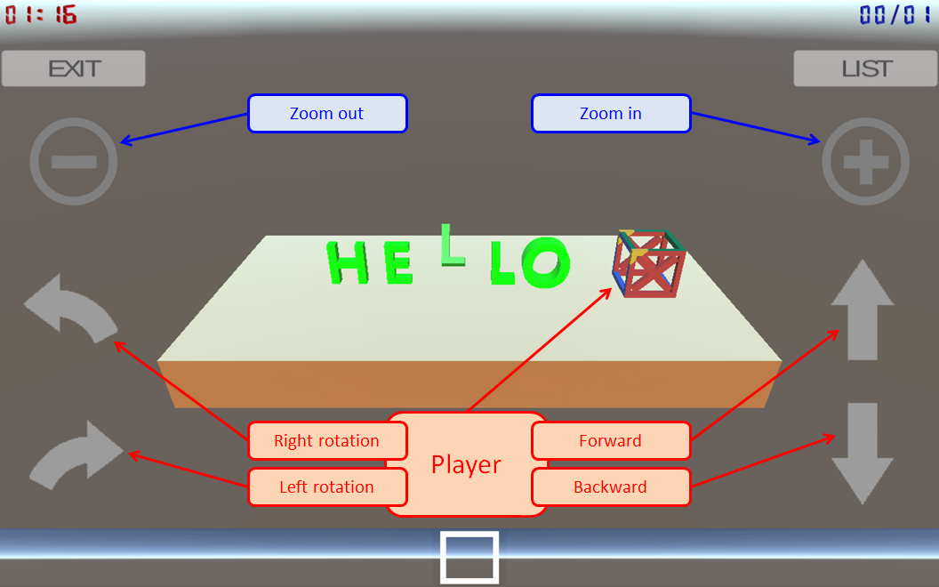 ・キューブを操作して、英単語から逃げ出したキャラクターを捕まえます。