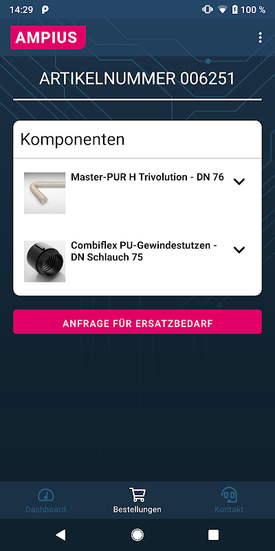 Über die AMPIUS®-App kann nun die Produktsignatur von Schlauchsystemen, die serienmäßig mit einer digitalen AMPIUS®-Schnittstelle ausgestattet sind, ausgelesen werden. So können einfach und direkt vor Ort alle relevanten technischen Daten oder auch Daten zum Lebenszyklus des Produkts abgefragt oder per Knopfdruck neue Bedarfsanfragen gestellt werden. Auch die Zusammensetzung eines vorliegenden Schlauchsystems wird anschaulich verdeutlicht.