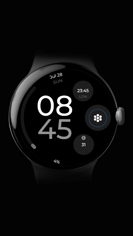 - Quadrante digitale minimale progettato per dispositivi Wear OS con API 30+