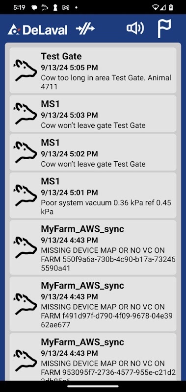 DeLaval AMS Notifier riceve avvisi dal tuo VMS (Voluntary Milking System) tramite notifiche push sul tuo telefono o tablet Android. Gli avvisi verranno visualizzati anche se l'app è in esecuzione in background.