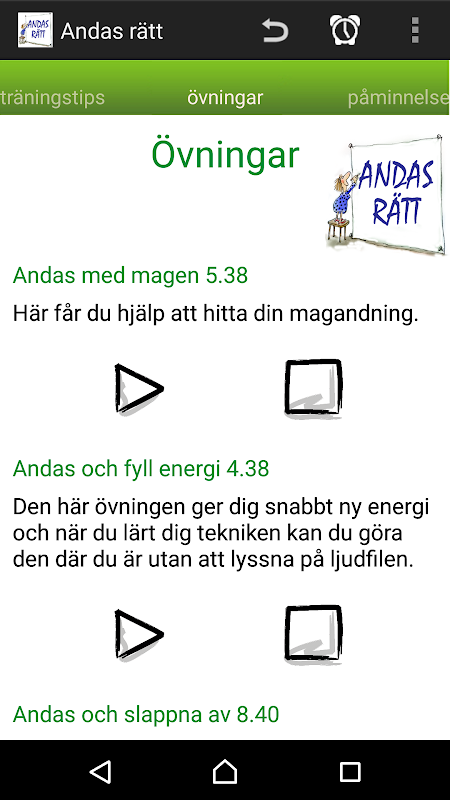 Questa applicazione è parte di una serie di applicazioni con il rilassamento e training mentale fatta e registrata da Eva Johansson, che di solito ottiene un feedback su avere una delle più confortevoli rilassamento voti della Svezia.