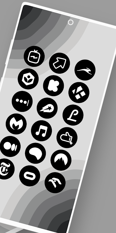 Personalizza la tua schermata iniziale utilizzando questo Icon Pack minimale, piatto, a forma di cerchio nero basato sullo stile di Google Android 14 utilizzato sulle ultime serie Pixel 7 e 7 Pro