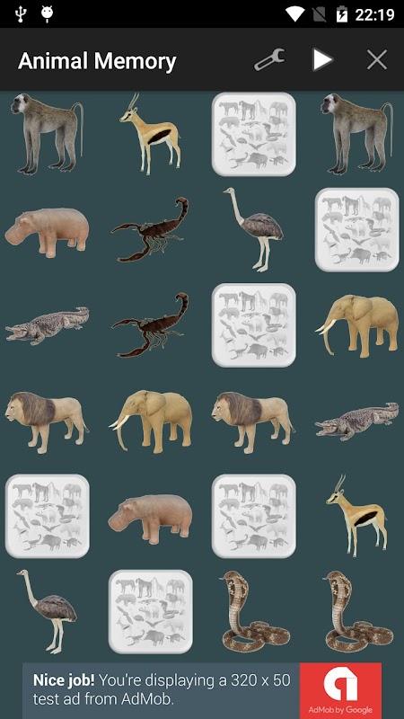 Tre serie di immagini di animali sono incluse in questo gioco, selvatica, fattoria e mare. L'obiettivo è quello di abbinare le coppie in meno mosse possibili e rompere il punteggio più alto.