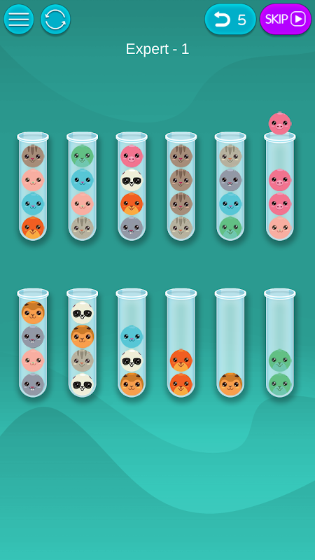 Ordinare gli animali nel tubo fino a quando tutti gli animali non sono raggruppati nello stesso tipo. Dovrai ordinare gli animali come una palla nello stesso tubo per vincere il livello.