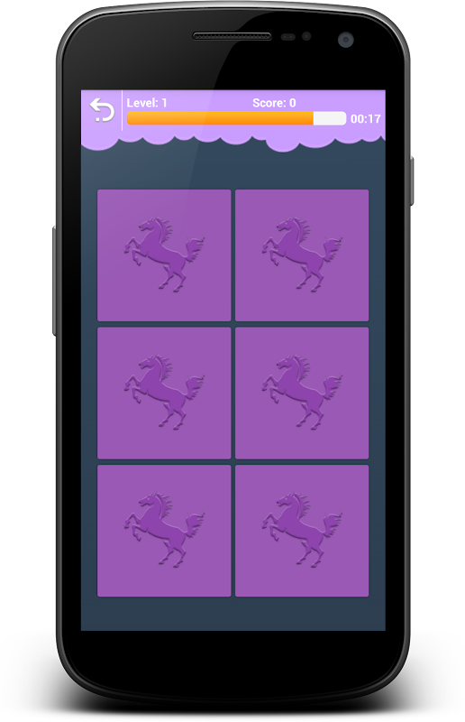 • Initially you will see all cards turned face down. Tap on one of the card and remember the picture on it. With the next tap try to find and flip the card with the same picture as previous one. If the pictures on the both memory cards will be the same, they will stay opened and you can continue with the next pair. Otherwise both cards will flip back over and you will get another try. Try to find all matched cards as fast as possible.