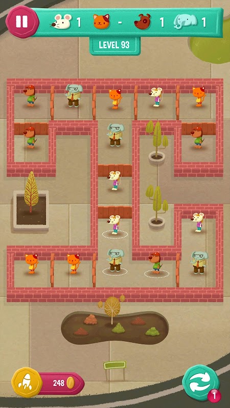 In this adorably tricky puzzle game, dogs and cats and mice are all separated by fences. It's up to you to remove those fences, but watch out: if you let dogs outnumber cats or cats outnumber mice, well... you'll see.