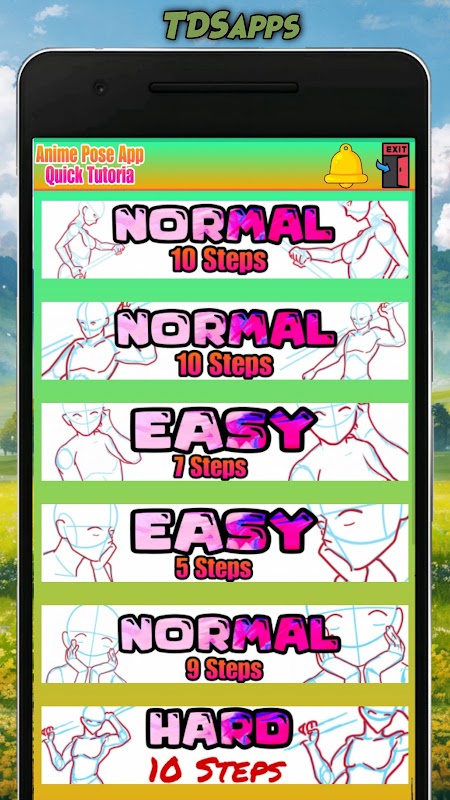 La nostra app "Drawing Anime Poses" offre tutorial passo-passo per principianti ed esperti. Con la nostra guida completa, puoi imparare a disegnare facilmente pose sedute, pose d'azione e pose di coppia. La nostra app copre anche le proporzioni del corpo, le espressioni facciali e i dettagli dell'abbigliamento, così puoi creare personaggi realistici e accattivanti. Che tu sia un artista in erba o un professionista esperto, la nostra app per disegnare anime ha tutto ciò di cui hai bisogno per migliorare le tue abilità.