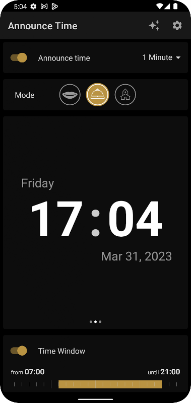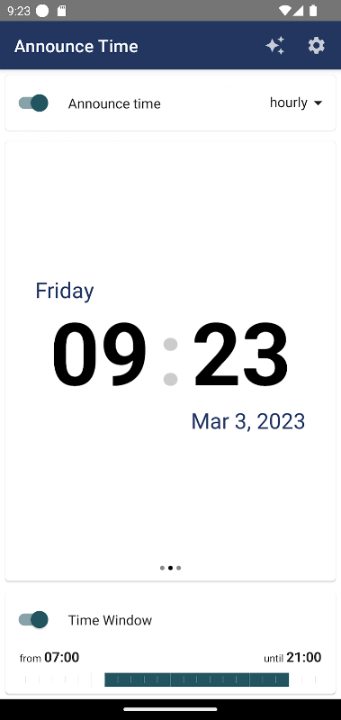Annuncia l'ora a intervalli regolari utilizzando la sintesi vocale.