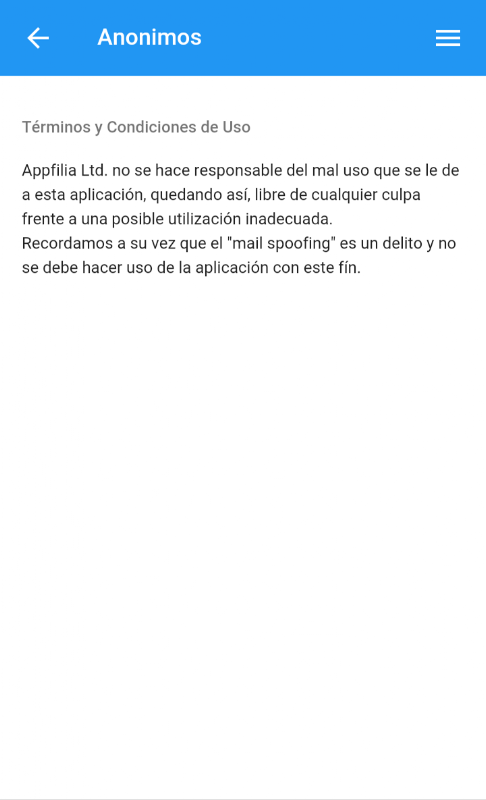 * Te recordamos que el “mail spoofing” es un delito, utiliza nuestra aplicación con conocimiento y bajo tu responsabilidad.