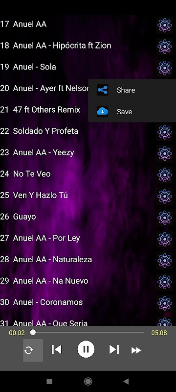 nell'applicazione AnuelAA Songs è molto facile riprodurre le canzoni di AnuelAA in varie condizioni..