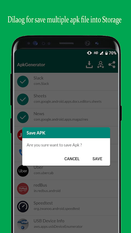 5. Salva il file APK installato nella directory specifica della memoria interna