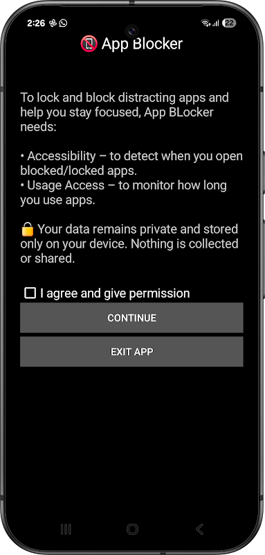 App BLocker non raccoglie, archivia o condivide dati personali o sensibili. Tutte le informazioni rimangono private sul tuo dispositivo.