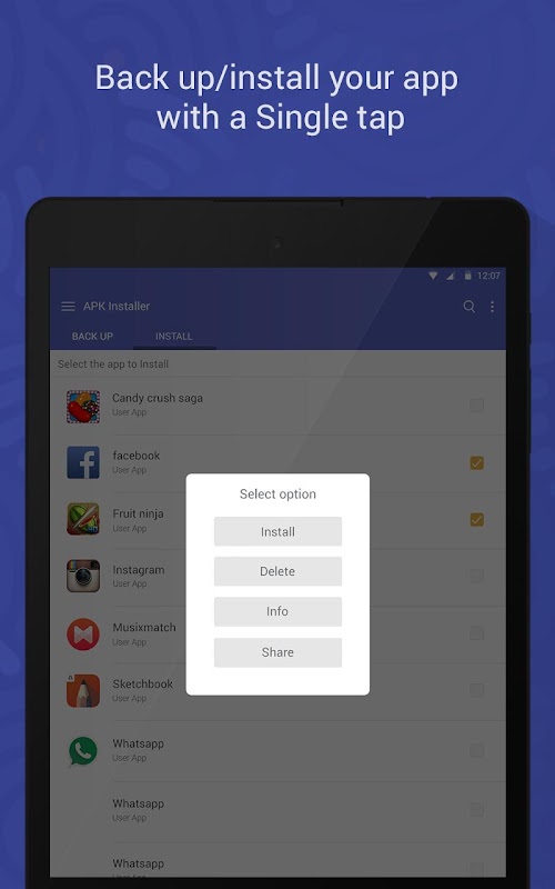 App Extractor/Installer is awesome app to back up your installed apps via multiple or single mode. It keeps a back up of all the app which you want always available. You can install it again whenever you want it and it's is so simple and fast.
