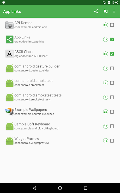 Google Nearby support allows you to easily share app links between people in the same room or your own devices. No exchange of email addresses required, just running App Links near each other is enough to share your app links.