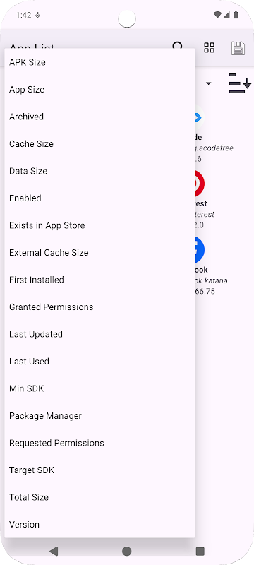 Questa app open source elenca una parte selezionata di informazioni sull'applicazione in tutte le app, per visualizzarle a colpo d'occhio. Queste informazioni possono anche essere esportate. Inoltre, è possibile visualizzare statistiche di riepilogo. I campi di informazioni sull'app attualmente supportati sono: • Dimensione APK