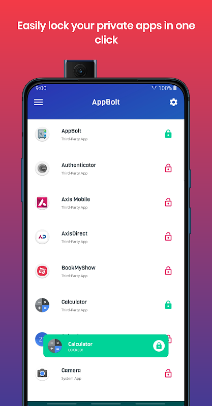 AppBolt - App Lock is the best app lock tool for Android, which will help you lock apps, hide photos and videos by locking gallery, photos and files apps. Protect your secret and guard privacy with PIN, Passcode and pattern lock. App Lock - AppBolt can lock any app you choose.