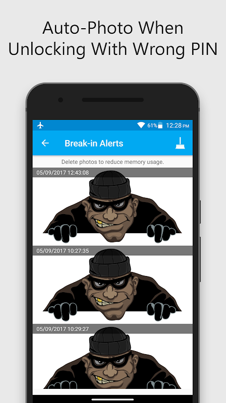 Scatta automaticamente una foto quando qualcuno inserisce la password errata. Scopri chi ha tentato di sbloccare le tue app protette.