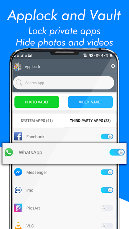 App Lock and gallery vault protects all your favorite apps including WhatsApp, Facebook, Snapchat, Messenger, imo , Instagram, tik tok, offering password, pattern and fingerprint lock.
