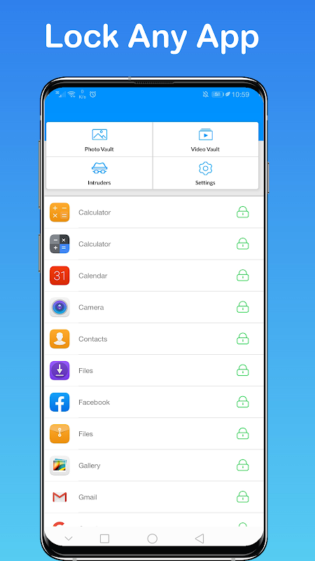 app locker is a tool and privacy guard to prevent intruders & snoopers from peeping at your personal data , app lock will help you to lock apps, hide photos and videos.