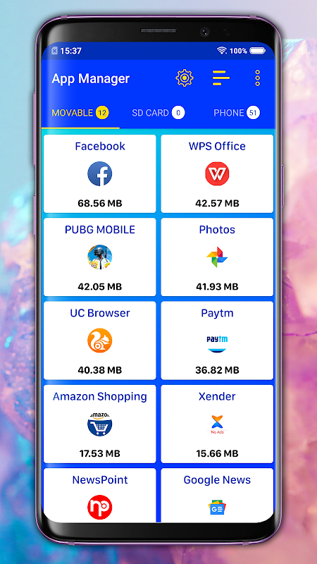 App Manager quickly lists all the installed applications on the user's device, displaying information about each application allowing the users to choose whether to Uninstall, backup or read detailed information about each application.