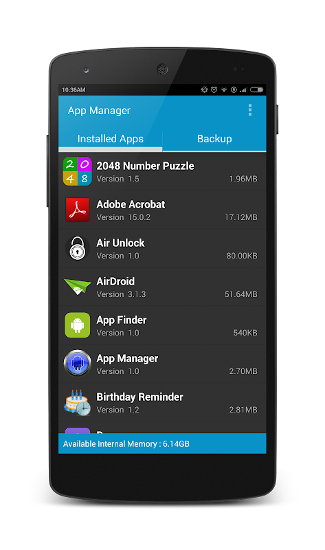Easy way to manage the installed applications and allows to take backup of the application in the SD card.