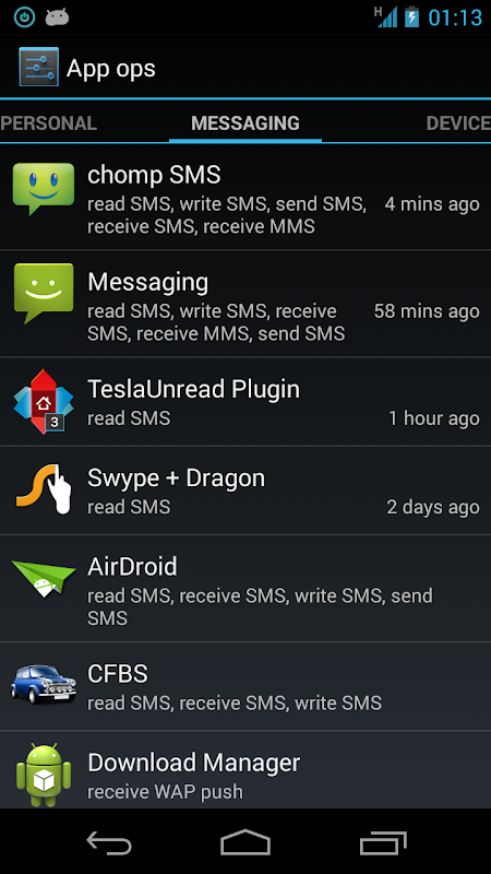 With the access to "App Ops", you can control the permissions of each app installed on your device. To protect your privacy, you can revoke any suspicious permissions granted by a particular app.