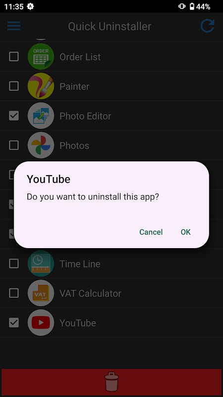 Vuoi eliminare ed eliminare l'app e la casella di controllo alla volta.