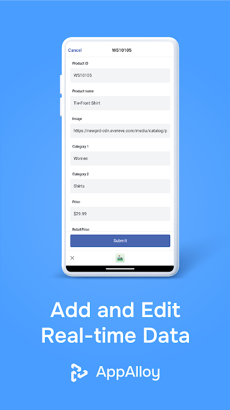 AppAlloy è la tua app di riferimento per semplificare qualsiasi tipo di processo lavorativo! AppAlloy è un programma senza codice che consente ai non programmatori e agli imprenditori di trasformare i propri fogli di calcolo (fogli Google e file Excel) in app mobili native completamente funzionali!