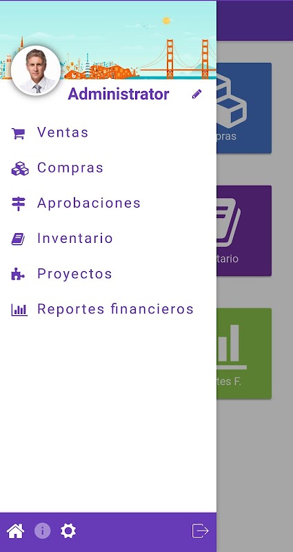 Aplicación móvil de una solución ERP para empresas, basada en odoo, que incluye entre sus novedades, multiempresa, intercompañía, multipais.