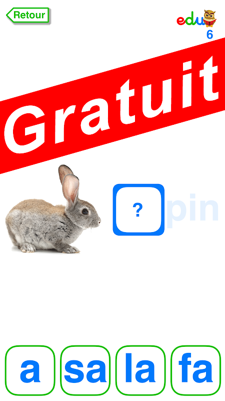 Diverse decine di migliaia di bambini stanno già usando Syllabique. Consigliato da molti logopedisti per imparare a leggere, gratuito e completo, questo gioco educativo si basa sul metodo sillabico per imparare il francese divertendosi dall'età di 3 anni. Attraverso livelli progressivi e strutturati, il bambino assimila i suoni, poi le sillabe, quindi il loro assemblaggio. Un grande vantaggio per il tuo bambino!