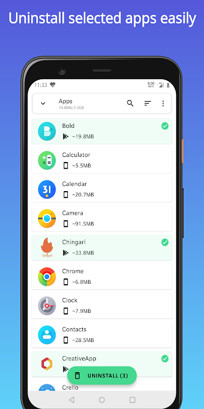 Disinstalla più app, filtra, ordina e visualizza informazioni dettagliate