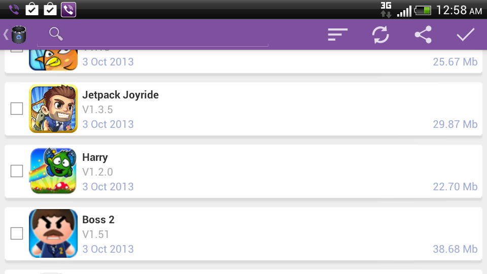 L'applicazione di disinstallazione è un'applicazione che permette di disinstallare facilmente molte applicazioni in un solo click, per cercare una specifica applicazione per disinstallare o condividere con gli amici via Facebook, Tweeter, G-mail, Linea, Viber , Skype o altre applicazioni, è anche possibile ordinare la lista delle applicazioni per nome, dimensione o data di installazione.