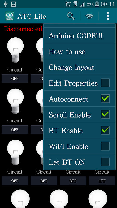 Thanks to your feedback and support, Arduino Total Control now can be fully customized. You can manage the layout as you like the most! Just enable "Edit properties" form the menu to hide/show buttons, text or images, then, keep your finger (long click) on the picture in order to change the displayed image, and choose one from your gallery or take a shot.